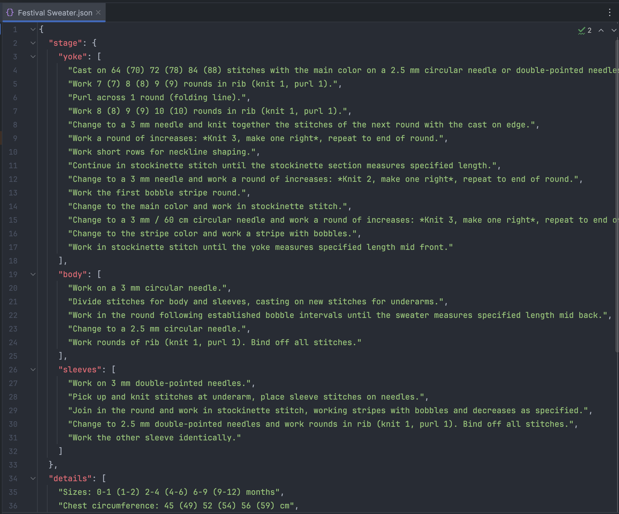 The knitting instructions